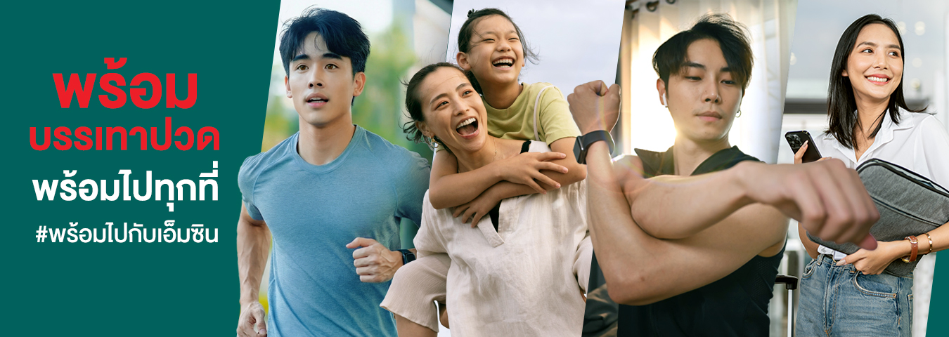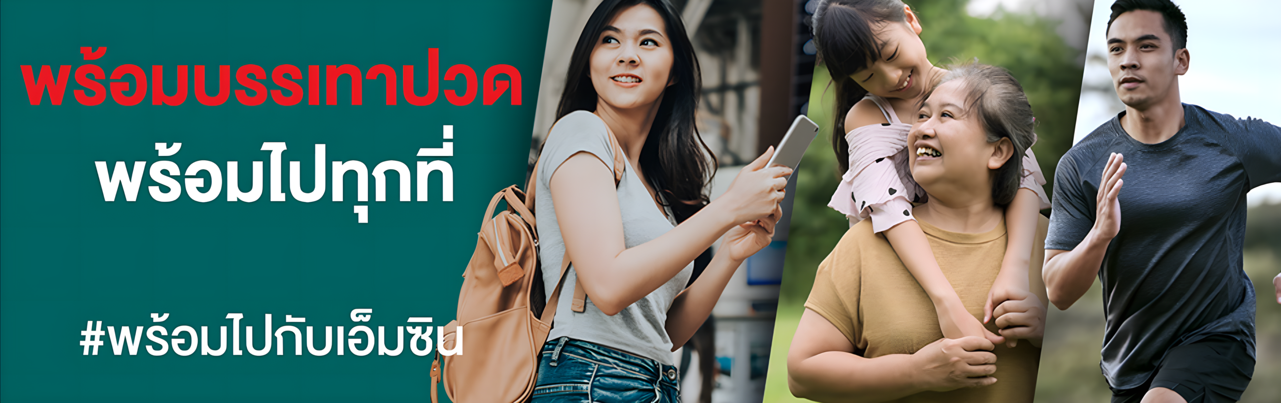 #พร้อมไปกับเอ็ม-ซิน พร้อมลุยทุกย่างก้าว ไมมีคําวา"ปวดเมื่อย" พร้อมลุยงาน ลา..อาการ "ปวด" พร้อมเดินทาง "ปวดปุ๊ป ฉีดปั๊ป" พร้อมช้อป หนักแค่ไหนก็ "ไม่กลัวปวด" บทความ กำลังดึงข้อมูล... เอ็ม-ซิน มีวางจำหน่ายแล้วที่ร้านขายยาทั่วประเทศ